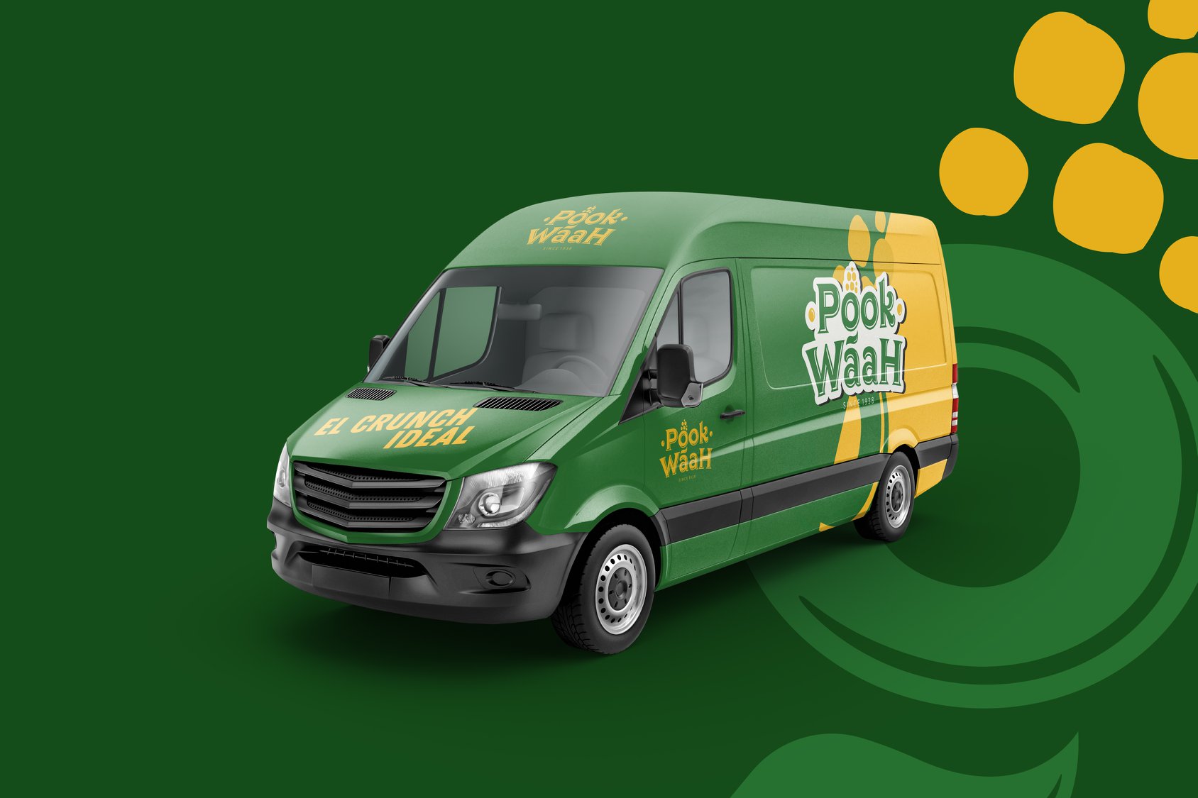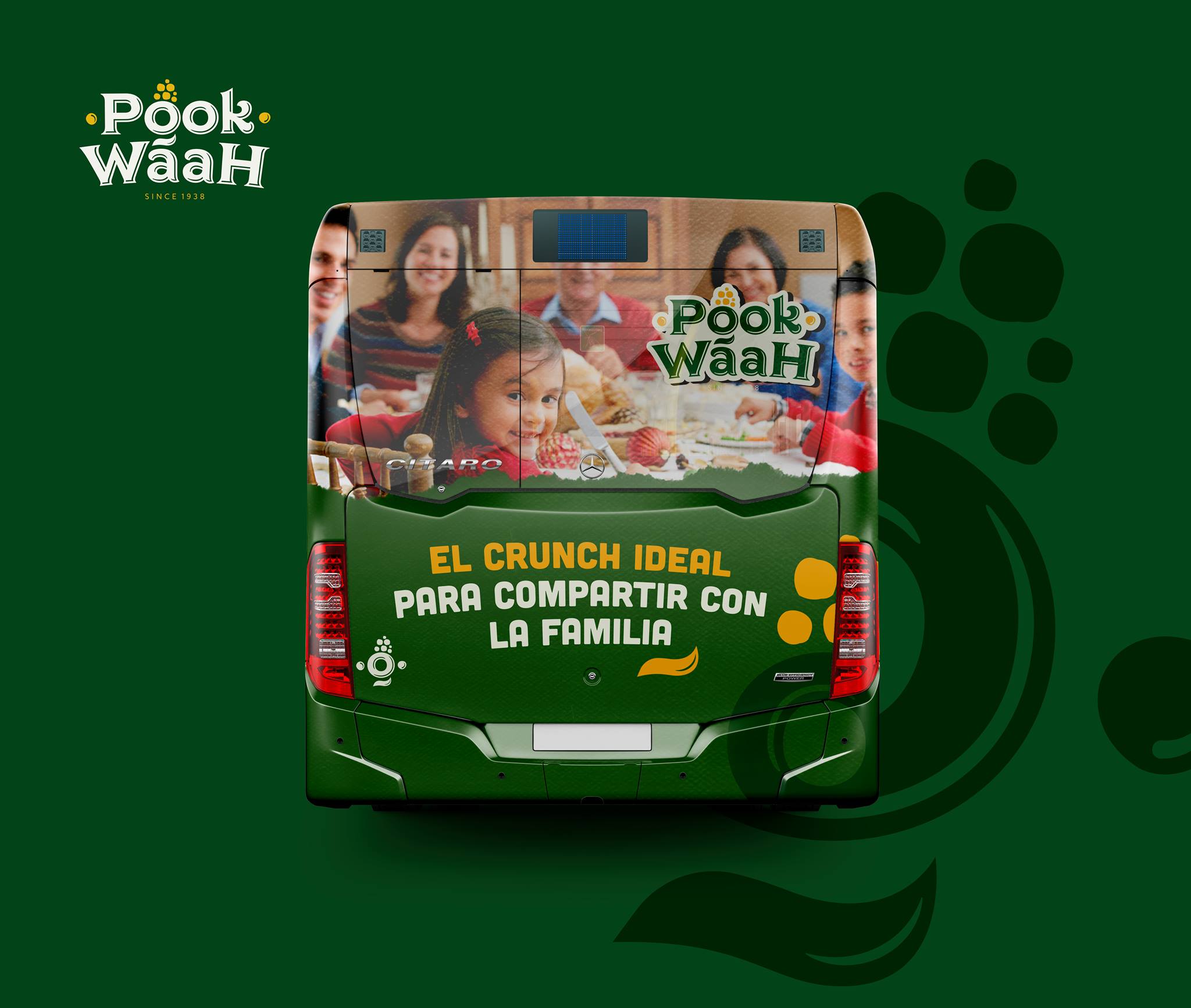 Rediseñamos el logotipo de ??Frituras Pook waah? y con ello su identidad. El reto era crear un logotipo que pudiera funcionar en "flat" y sobre los empaques de las frituras, siendo el logotipo la parte más sobresaliente.